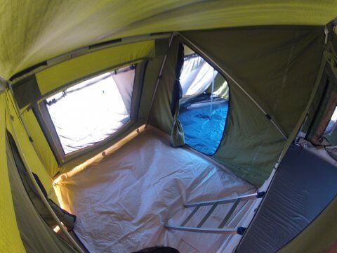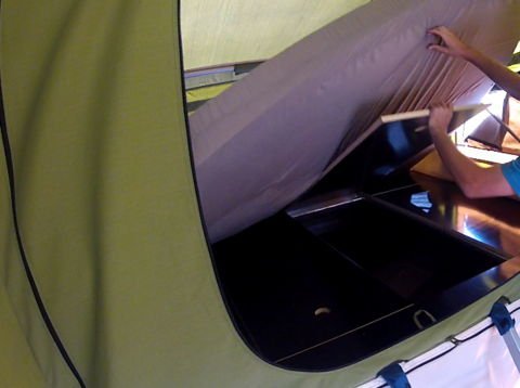 - intelligentes Zeltdesign führt dazu, daß der Boden im zusammengepackten Zustand obenauf liegt, wodurch es wesentlich einfacher wird ihn zu putzen und das Zelt sauber zu halten