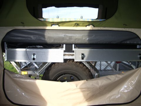 - Anhängerinhalt ist durch Ladeklappen im Schlafraum leicht erreichbar