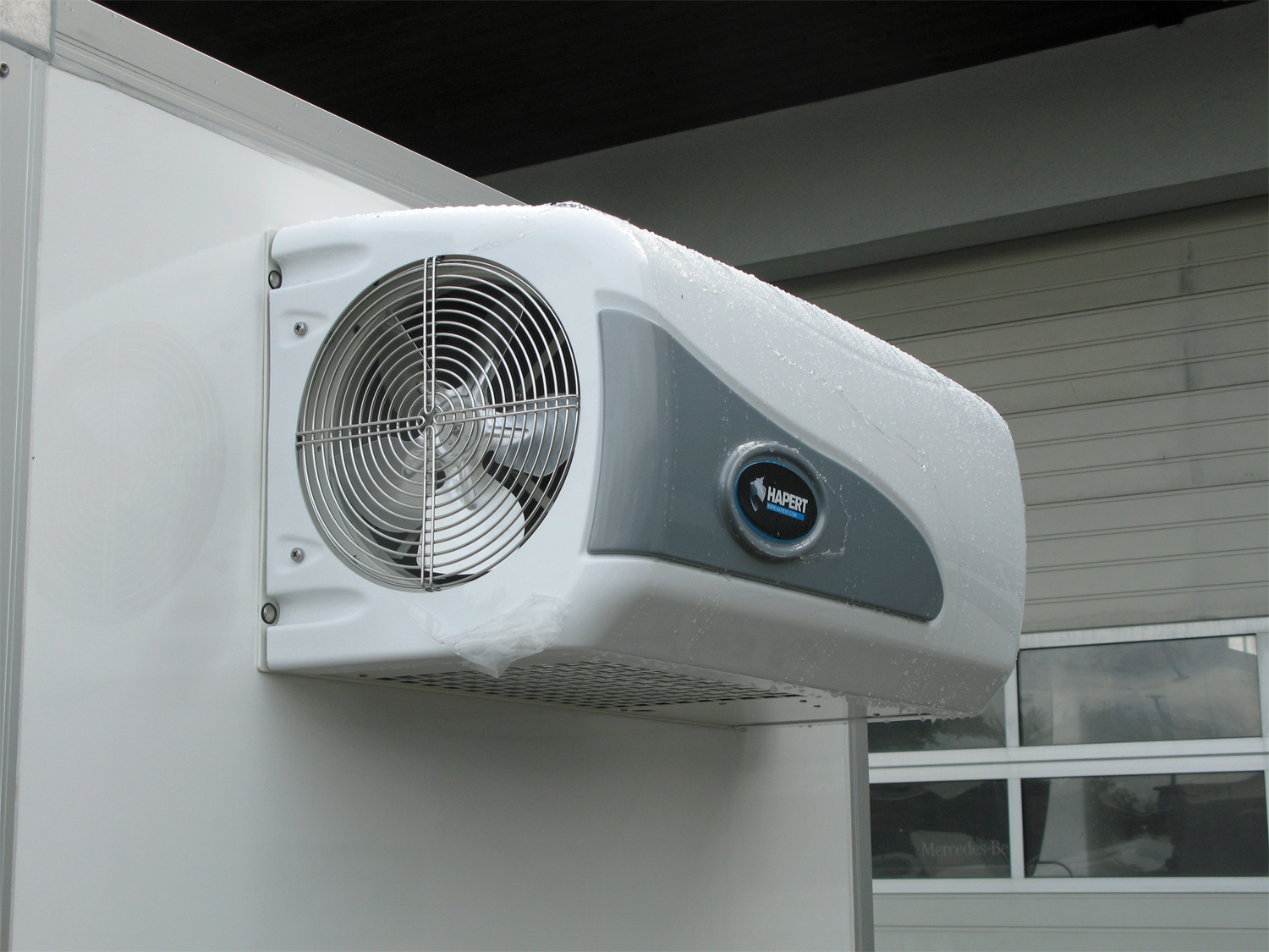 Dieses Modell ist serienmäßig mit hochwertigen Isolierplatten versehen, die aus zwei Deckschichten aus Polyester, einer zweifachen Holzeinlage und einem Kern aus Isoliermaterial bestehen. Edelstahl-Scharniere und -Verschlüsse garantieren Langlebigkeit, während das leistungsfähige Kühlaggregat mit 1600 W für optimale Kühlung sorgt. Ein Verlängerungskabel, Innenbeleuchtung und eine abschließbare Bedienkonsole gehören ebenfalls zur Serienausstattung. Die glatten Gelcoat-Außenwände eignen sich ideal für Werbeaufkleber, sodass der Kühlwagen gleichzeitig als mobile Werbung genutzt werden kann.