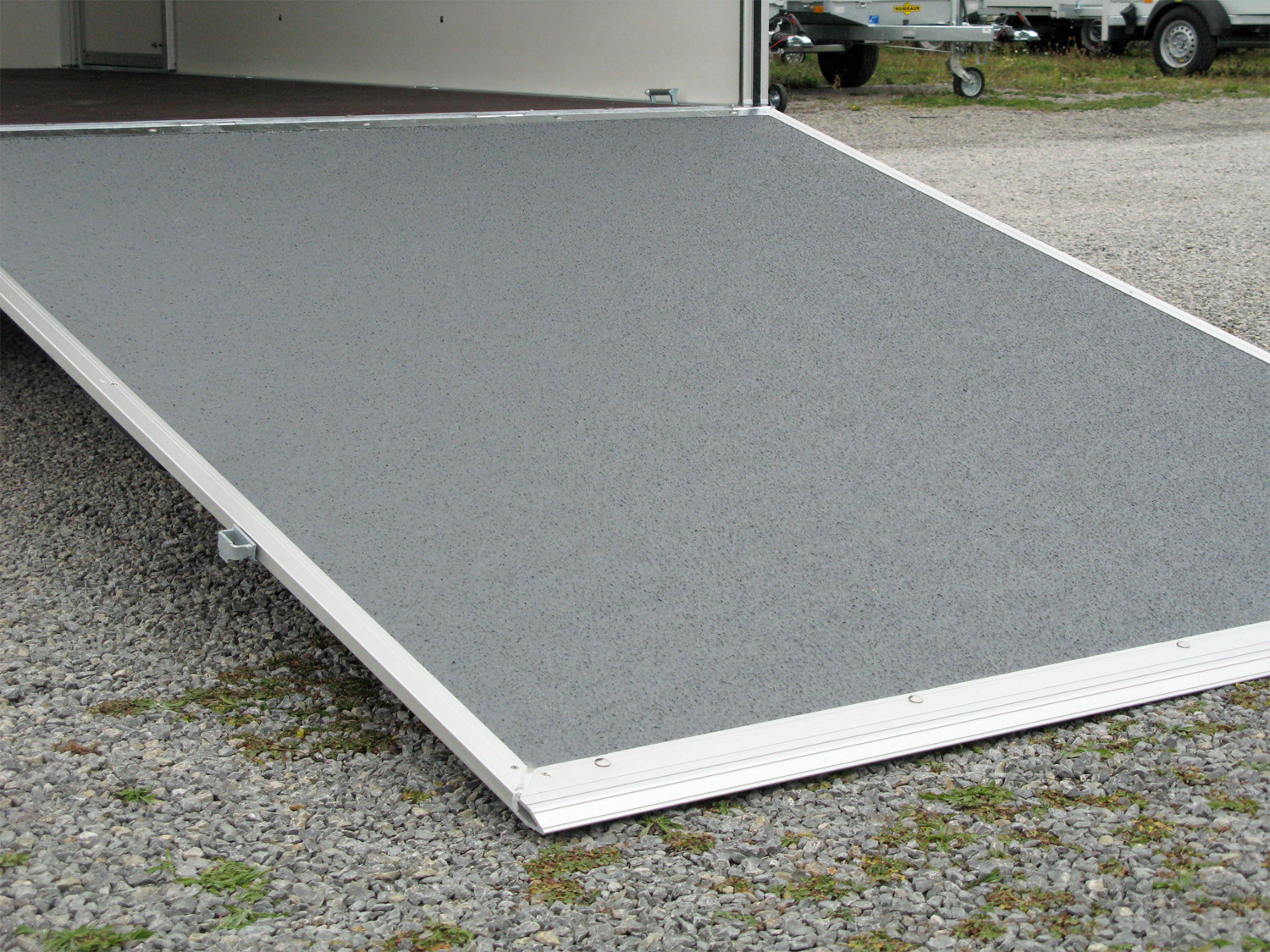 Die Multiplex-Wände (15 mm, kunststoffbeschichtet) sorgen für eine stabile Konstruktion, während der Multiplex-Boden mit rutschhemmender Beschichtung eine sichere Ladung ermöglicht.