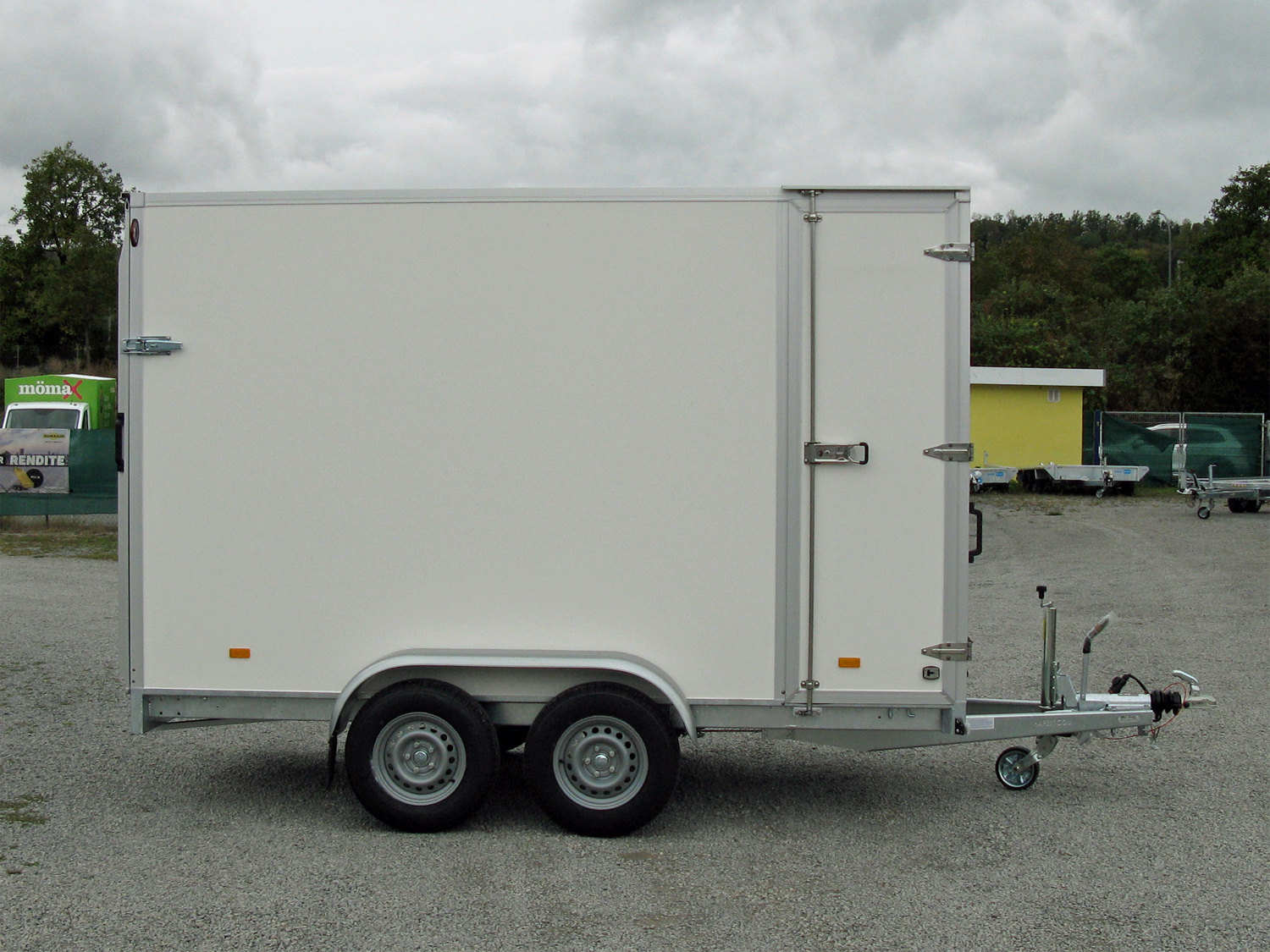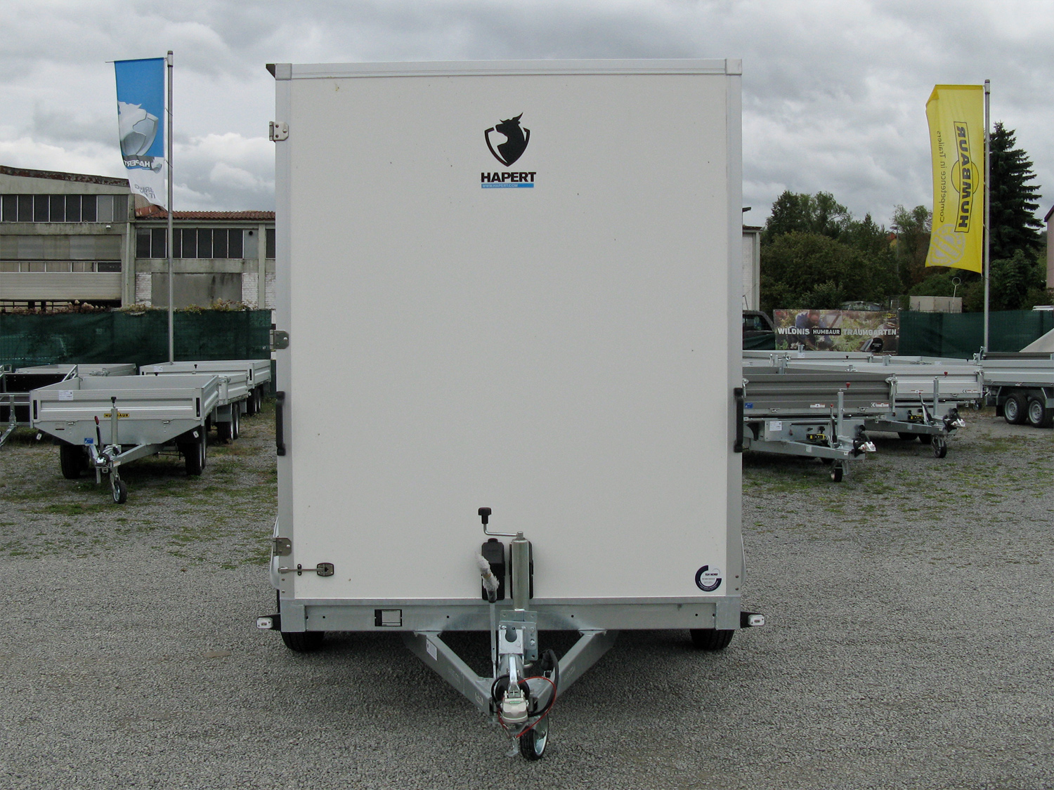 Der Hapert Sapphire L-2 – 2700 ist ein robuster Tieflader-Kofferanhänger, ausgestattet mit einer rutschhemmenden Auffahrklappe mit Gasdruckfedern und einer Seitentüre vorne rechts für einfachen Zugang.