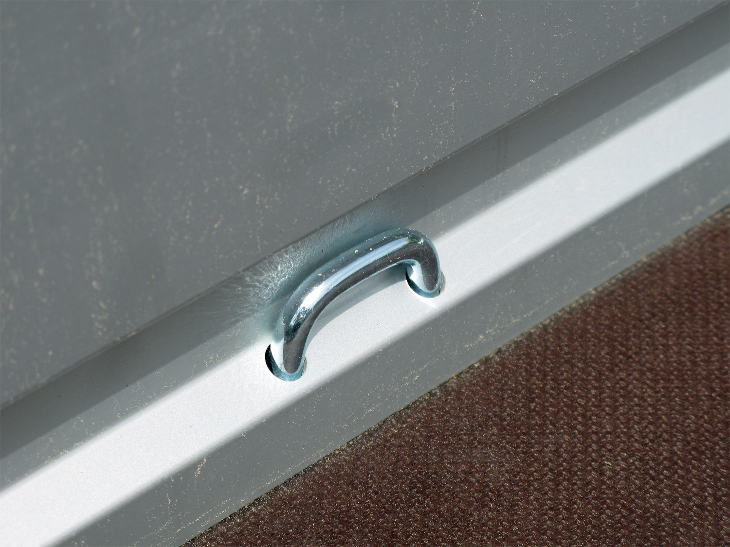 - Verstärkte Gewerbeplane in Alusilber, mit Querlattung und Metalldrehverschluss