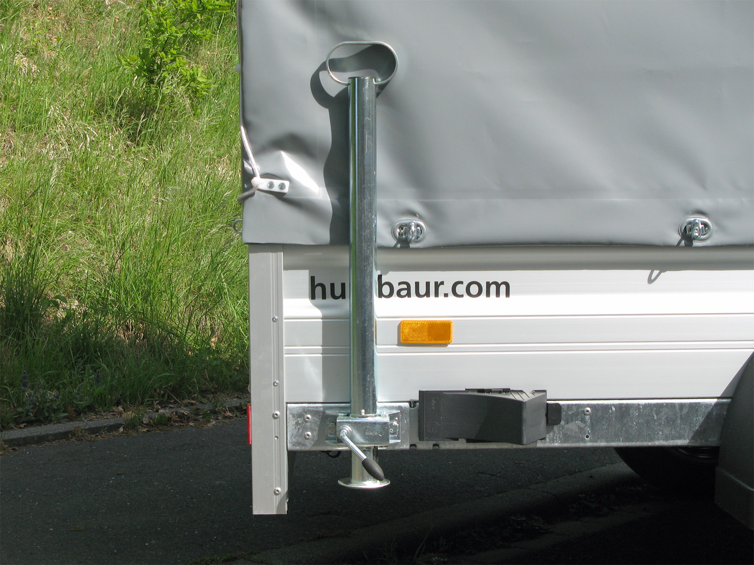 Der Humbaur HA132513 KV ist ein hochwertiger HA-Tieflader, ausgestattet mit einer 1400 mm hohen Plane und einer Gesamthöhe von 1970 mm, ideal für Garageneinfahrten.