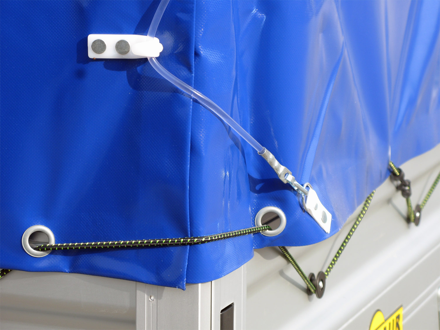 Der Humbaur HA752111 KV überzeugt mit einem Planenaufbau von 1300 mm Innenhöhe in Blau, bei dem alle Seiten geöffnet werden können, was maximale Flexibilität beim Beladen ermöglicht.