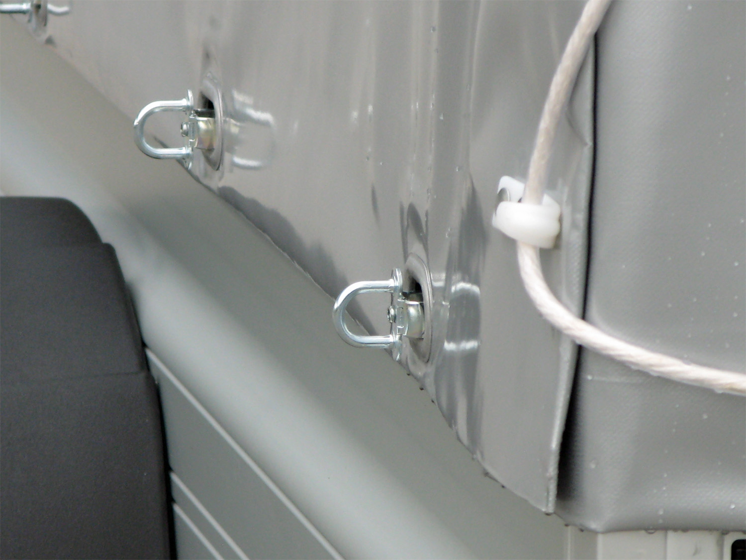 - Versenkte Zurrbügel zur Ladungssicherung (4 Stück bis 2050 mm Kastenlänge, 6 Stück ab 2510 mm Kastenlänge)