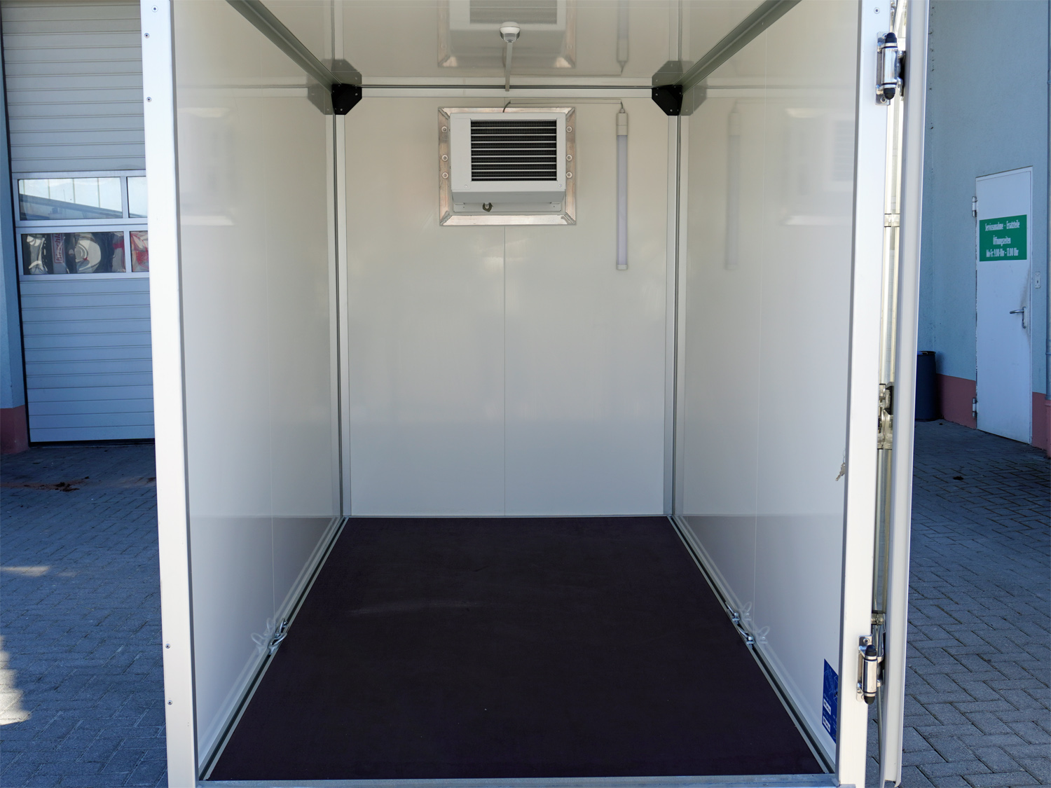 Der Humbaur HK 132614-18 PF30 Basic ist ein zuverlässiger Einachs-Sandwichkoffer für den gekühlten Transport. Die feuerverzinkte Konstruktion sorgt für maximale Langlebigkeit, während die 30 mm starken Sandwichpaneele mit einem geschäumten Polyurethan-Kern eine ausgezeichnete Isolierung gewährleisten. Der Boden besteht aus wasserfest verleimtem Spezialholz mit rutschhemmender Phenolharzbeschichtung für sicheren Transport. Türdichtungen aus Kunststoff bieten optimalen Schutz gegen äußere Einflüsse. Dank seiner kompakten Maße ist der Anhänger ideal für flexible Logistiklösungen.