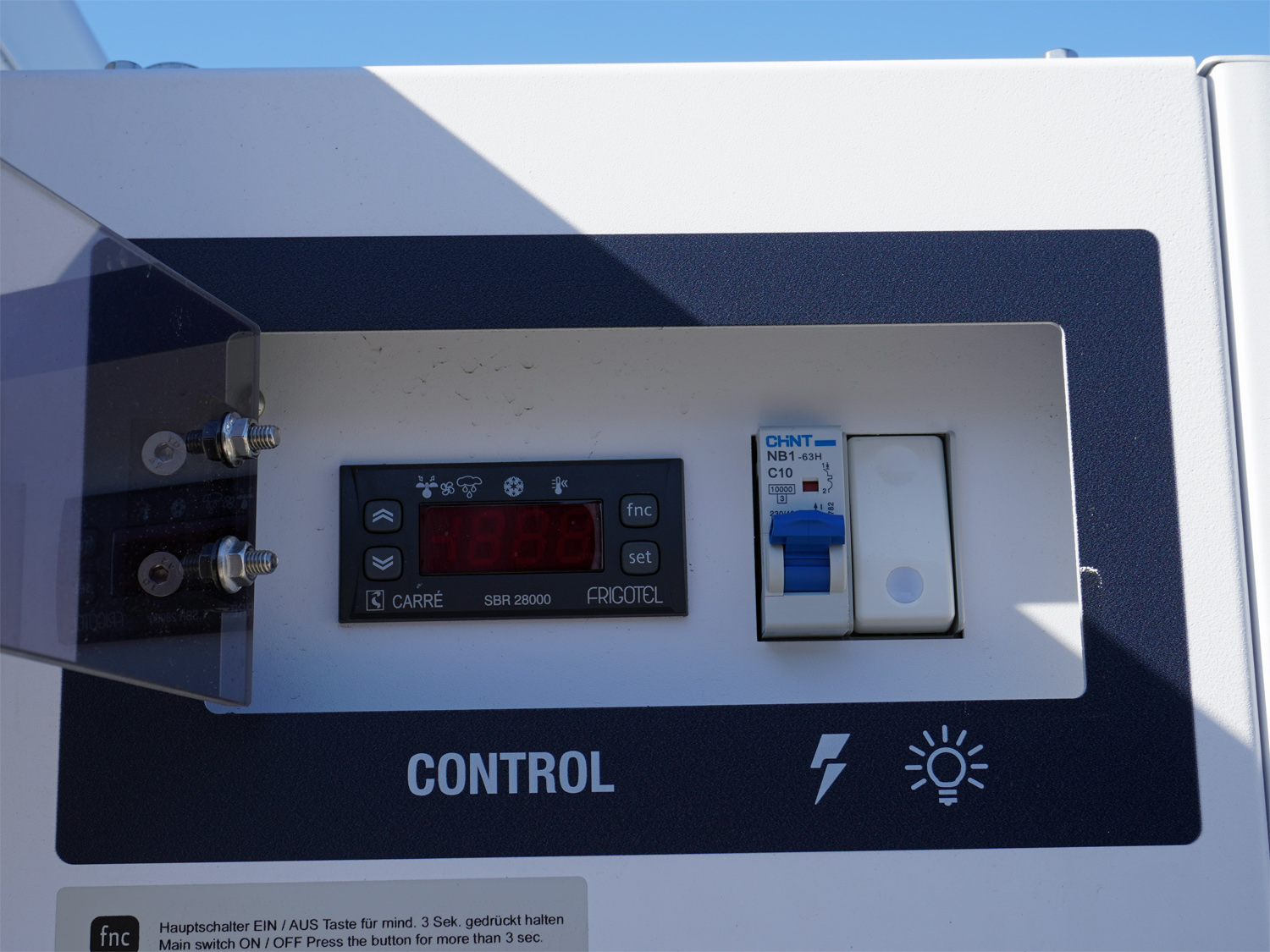 - Einflügelige Türe hinten mit Edelstahl-Drehstangenverschluss und Scharnieren