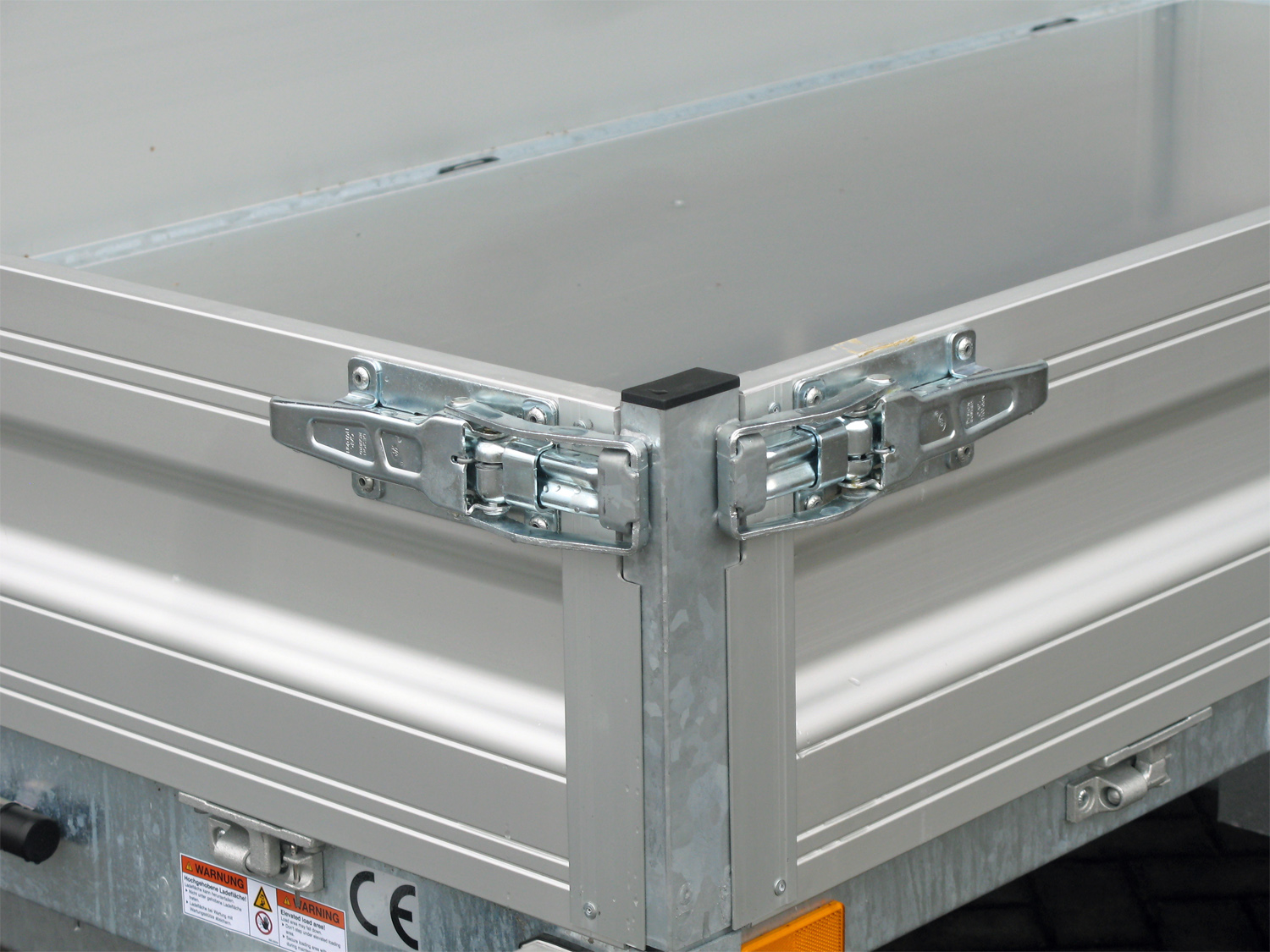 - Bordwände: Aluminium, 300 mm hoch, rundum klappbar