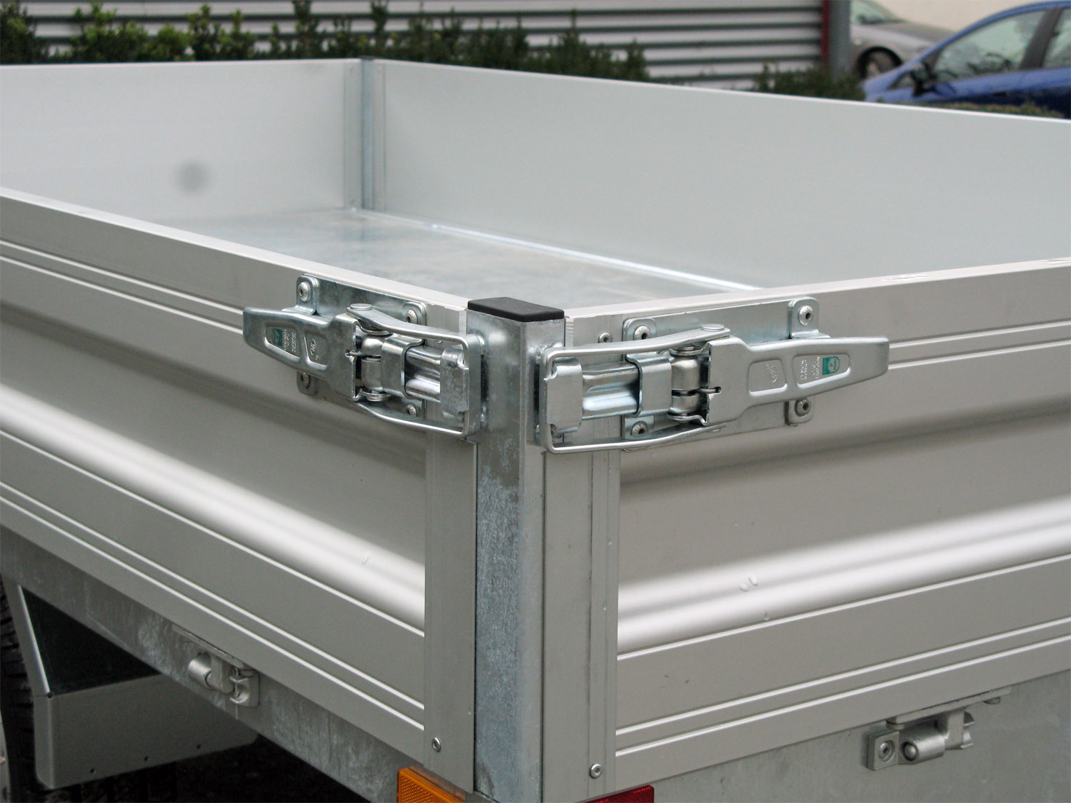 - Bordwände: Aluminium, 300 mm hoch, rundum klappbar