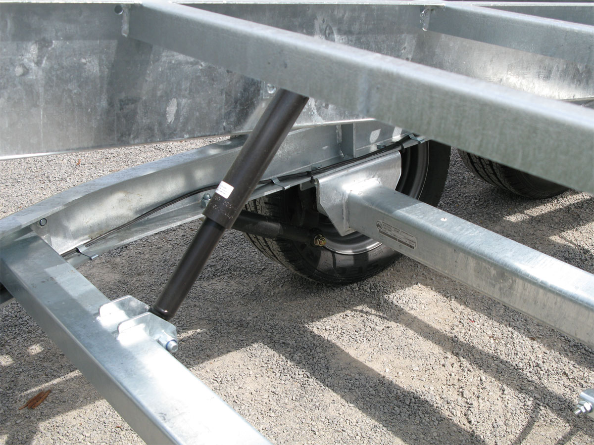 - Kippbrücke: Geschweißt, feuerverzinkt, mechanisch kippbar mit Gasdruckfeder (9° Auffahrwinkel)