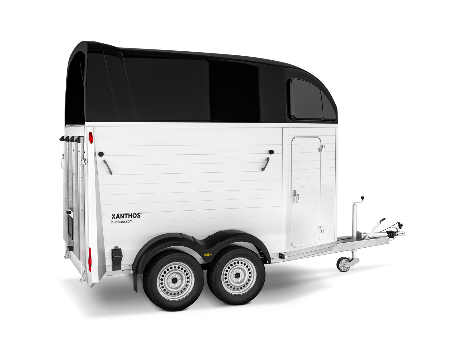 Der Humbaur Xanthos 2700 S vereint Stabilität mit einem leichten, eleganten Design. Das EquiDrive® PLUS S Fahrwerk mit Schraubenfeder-Achsen sorgt für eine optimale Fahrstabilität und ermöglicht eine komfortable Fahrt. Die doppelwandigen, eloxierten Aluminiumprofile gewährleisten eine langlebige und widerstandsfähige Konstruktion, unterstützt durch das umlaufende, feuerverzinkte Rahmenprofil. Für maximale Sicherheit verfügt der Anhänger über Seitentrittschutz, geteilte, gepolsterte und höhenverstellbare Brust- und Heckstangen mit Panikentriegelung, sowie die EquiLock® verriegelbare Trennwand. Das exklusive Windschott sorgt für eine zugfreie Innenraumbelüftung, während die getönten, 5-fach verstellbaren Ausstellfenster, die Innenbeleuchtung, und der Heunetzring zusätzlichen Komfort bieten. Weitere Features umfassen eine große Einstiegstür mit 3-Punkt-Verriegelung, die Auflaufklappe mit Trittleistengummi und Seitenstopp, sowie eine Polyhaube in Silver Metallic, die für eine ansprechende Optik sorgt.
