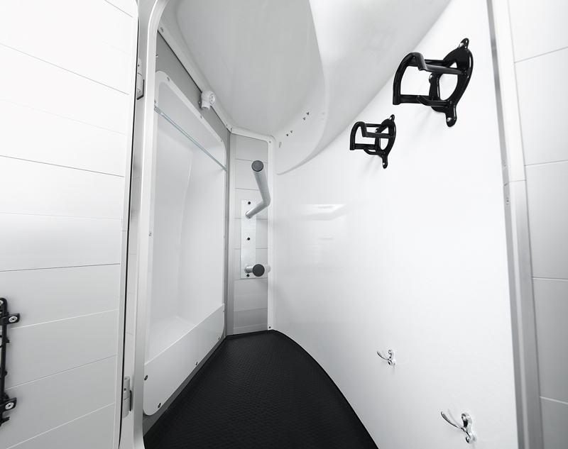 Der Humbaur Xanthos Aero 2700 überzeugt mit seinem innovativen AERO-dynamischen Bug, der für eine Reduktion von Windgeräuschen und Kraftstoffverbrauch sorgt, während der Stauraum der Sattelkammer um ca. 20 % vergrößert wird. Dank des EquiDrive® PLUS Fahrwerks mit automatischer Nachstellung der Bremse und Radstoßdämpfern bietet der Anhänger höchste Fahrstabilität und Komfort. Die robuste Konstruktion besteht aus doppelwandigen, eloxierten Aluminiumprofilen, ergänzt durch ein massives, umlaufendes und feuerverzinktes Rahmenprofil für maximale Langlebigkeit. Die großzügige abschließbare Sattelkammer ist mit Sattelhalter, Trensenhalter, Spiegel, Netz, Innenbeleuchtung, Schaufel und Besen ausgestattet. Weitere Komfortmerkmale umfassen die geteilten, gepolsterten und höhenverstellbaren Brust- und Heckstangen mit Panikentriegelung, das EquiLock® Trennwandsystem, sowie getönte, 5-fach verstellbare Ausstellfenster für individuelle Belüftung. Dank des Windschotts für zugfreie Innenraumbelüftung, einer Einstiegs- und Sattelkammertüre mit 3-Punkt-Verriegelung, sowie der eleganten Polyhaube und Bug in Silver Metallic, bietet dieser Anhänger höchsten Komfort für Pferd und Besitzer.