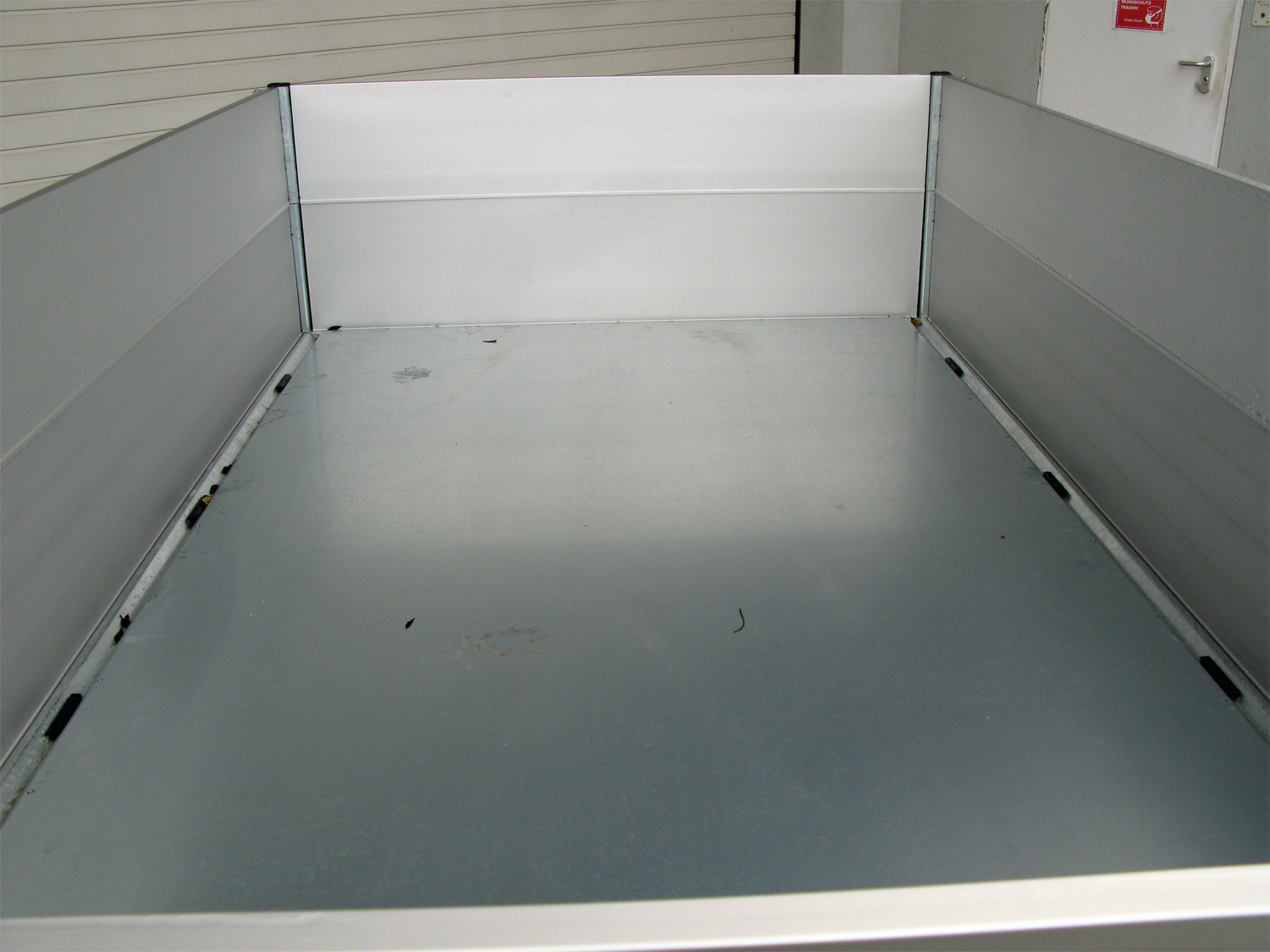 - Bordwände: Aluminium, 350 mm hoch, doppelwandig mit Spannverschlüssen