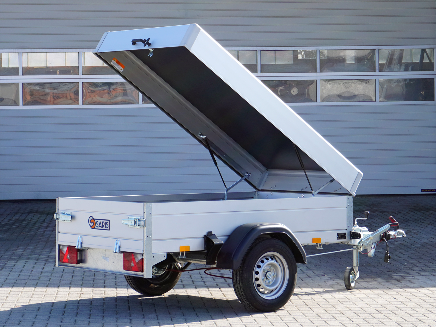 Der Saris MC 205 113 1000 1 ist ein robuster Deckelanhänger, ausgestattet mit einem Aluminium-Deckel, der nach hinten geöffnet werden kann und mit einer langlebigen GFK-Platte versehen ist. Dank der Radstoßdämpfer ist der Anhänger für eine 100 km/h Zulassung vorbereitet, sodass eine stabile Fahrt gewährleistet ist.