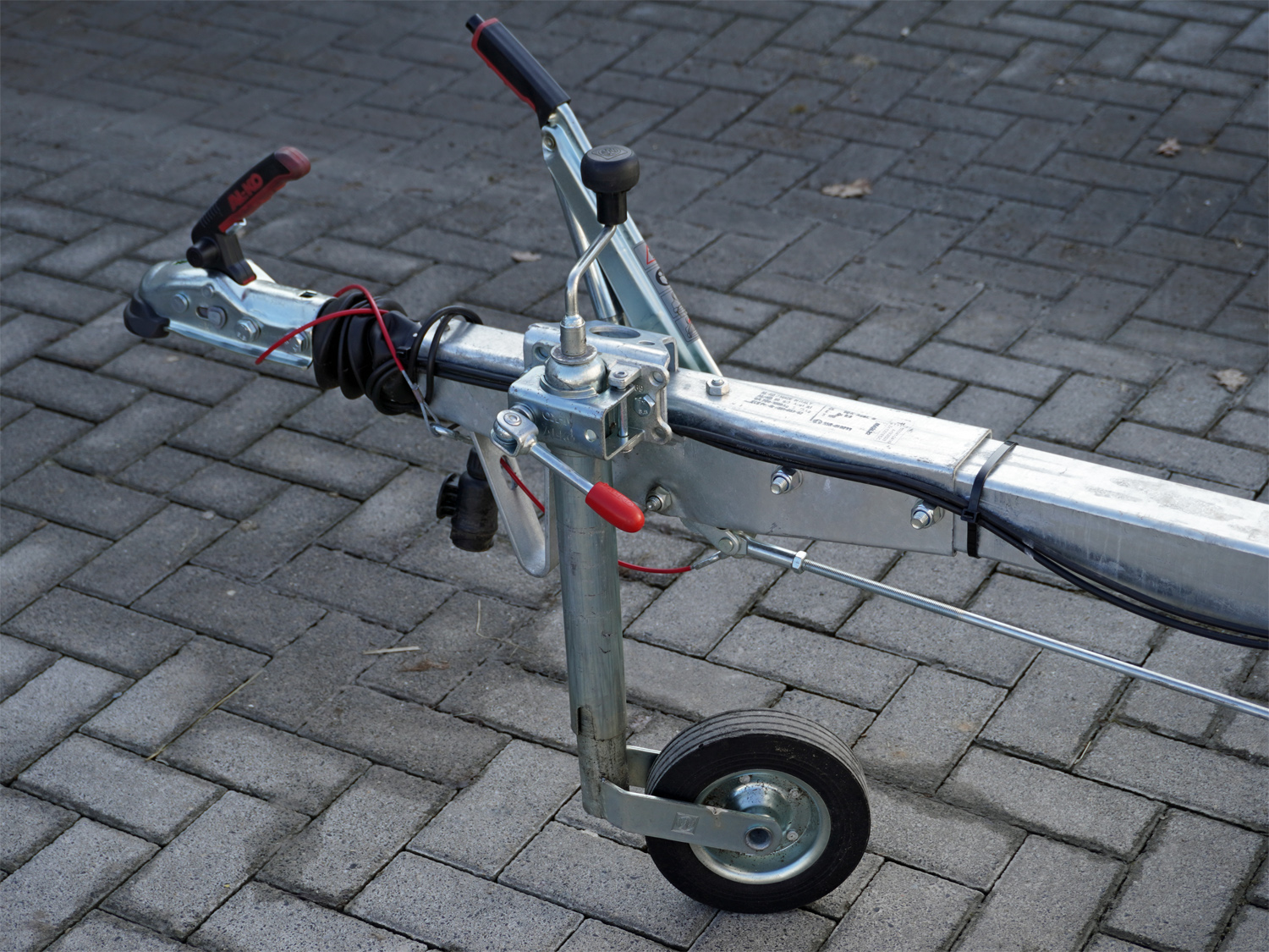 Die Bordwände bestehen aus Mehrkammer-Aluminium, während die verschweißten und feuerverzinkten Rahmenteile maximale Stabilität bieten. Die Bodenplatte aus wetterfestem finnischem Birkenholz ist 15 mm dick, UV-beständig und vollständig im Rahmen eingeschlossen. Der Anhänger verfügt zudem über einen selbstsichernden Verschluss sowie eine integrierte Schiene für Ankerhaken.