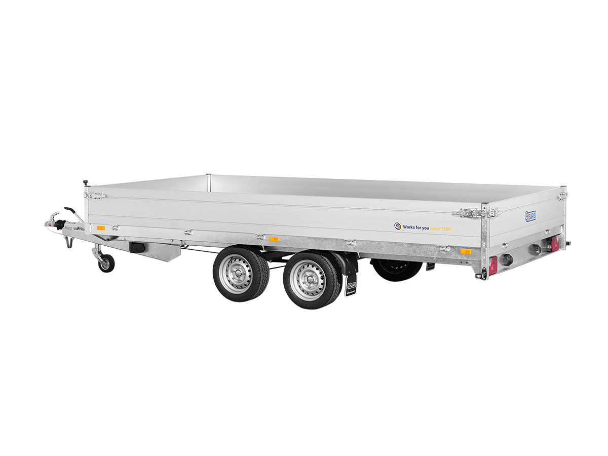 - Doppelwandige Aluminium-Bordwände mit 35 cm Höhe und Spannverschlüssen