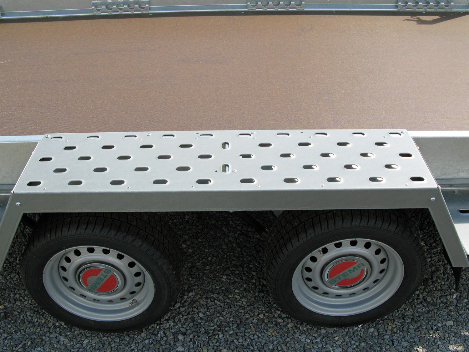 • Durchgängiger, rutschhemmender und wasserfester Siebdruckholzboden (18 mm stark)