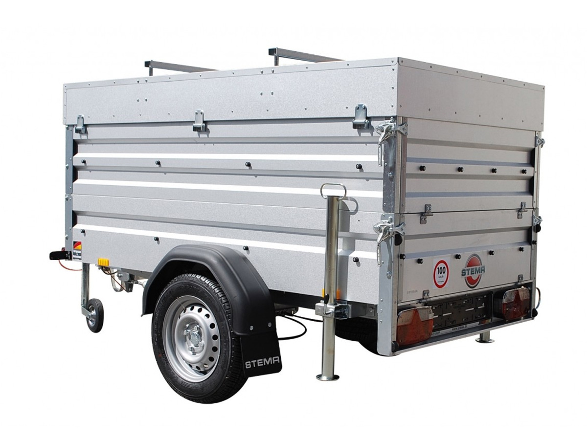 Der STEMA FT 7.5-20-10.1B ist ein stabiler und vielseitiger Kastenanhänger mit Bordwandaufsatz und spritzwassergeschütztem Metalldeckel. Sein Sicherheitsfahrgestell mit STEMA-V-Deichsel sowie der feuerverzinkte Stahlrahmen gewährleisten eine hohe Stabilität und Langlebigkeit. Die robuste Gummifederachse mit wartungsfreien Kompaktradlagern sorgt für eine zuverlässige Fahrt, während die Sicherheitsanzeige an der Kugelkopfkupplung und die schlaggeschützte Beleuchtung mit Dreiecksrückstrahlern und Nebelschlussleuchte zusätzliche Sicherheit bieten.