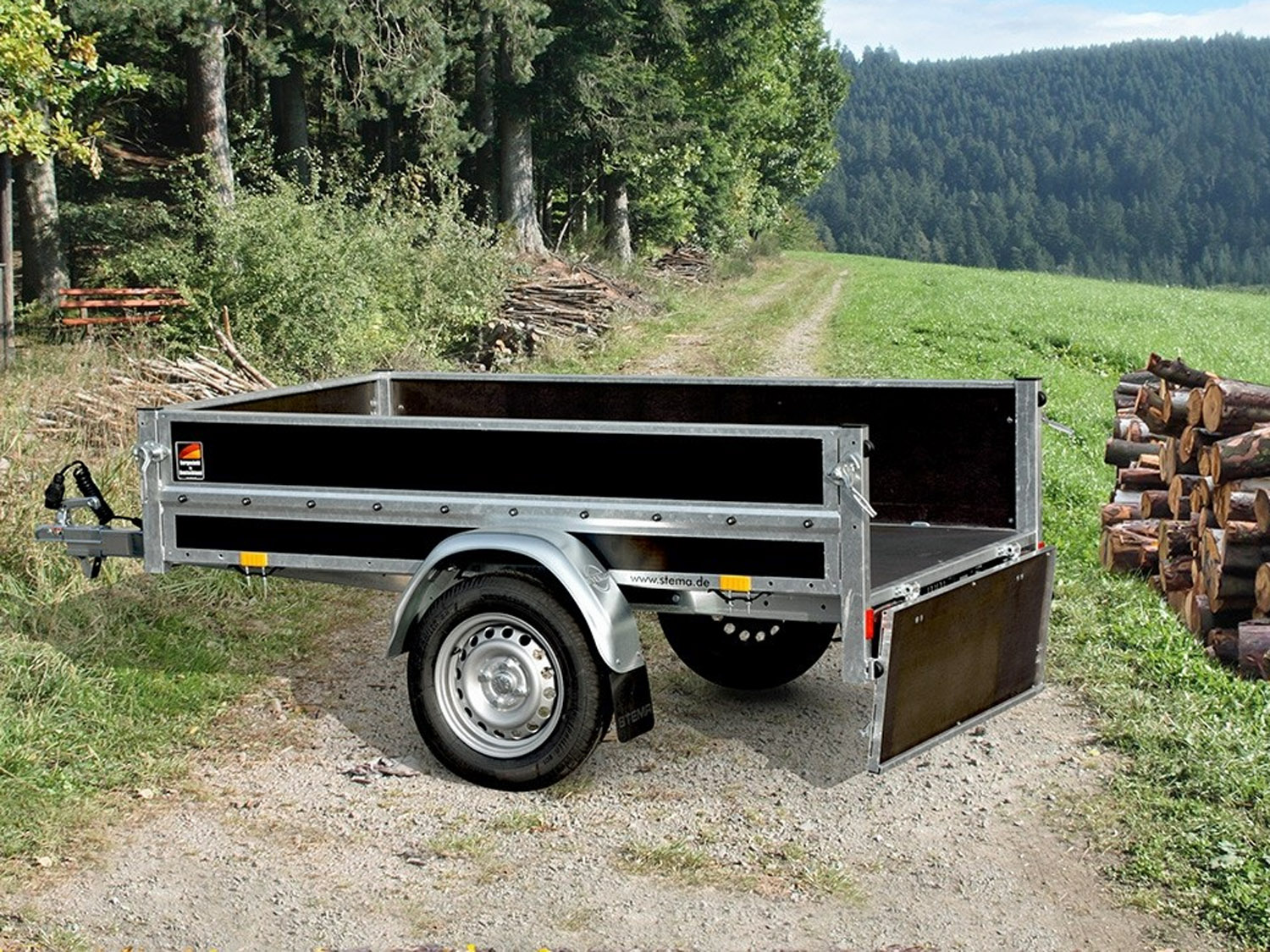 Der STEMA HZ 7.5-20-12.1 C Woodoxx ist ein ungebremster Tieflader, der sich durch seine robuste Konstruktion und vielseitige Einsatzmöglichkeiten auszeichnet. Die mitgelieferte Hochplane hat eine Innenhöhe von 140 cm und ist in den Farben Grau, Blau und Grün erhältlich.