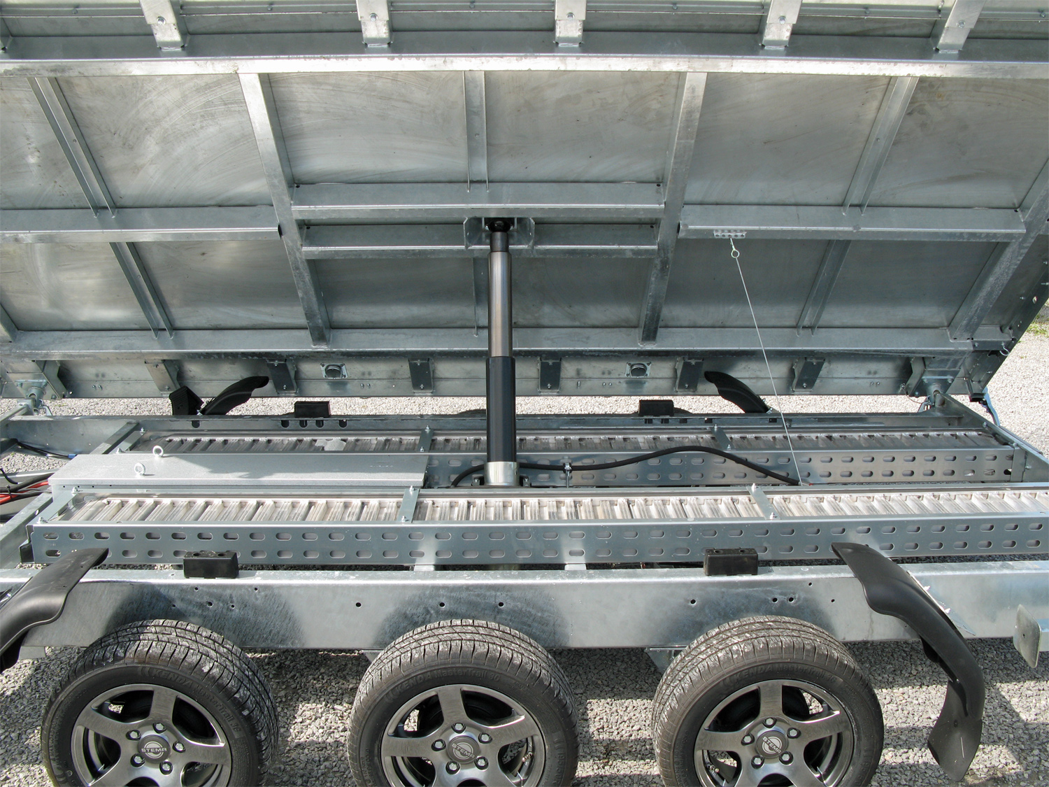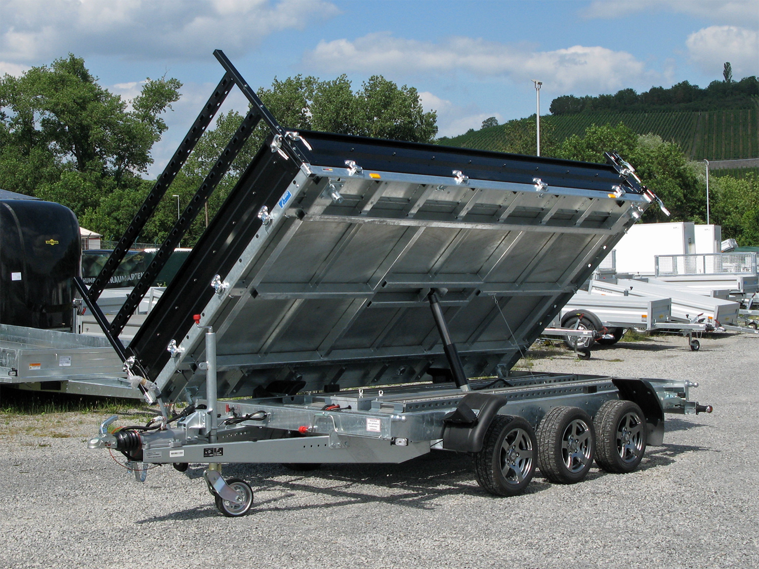 Der STEMA SHDK O2 35-40-20.3B TRIUS TRIDEM ist ein hochwertiger 3-Seiten-Kipper mit umfangreichem Zubehör. Er kommt mit Alufelgen, einem Auffahrpaket mit Aluminium-Auffahrschienen und Teleskopkurbelstützen sowie einem stabilen Leitergestell. Die Bordwände bestehen aus 2 mm starkem Stahlblech mit langlebigem Korrosionsschutz und robusten Winkelhebelverschlüssen. Die Rückwand ist pendelbar, und alle Bordwände sind abklapp- und abnehmbar. Das Fahrgestell ist teststreckengeprüft und mit einer STEMA Sicherheits-V-Deichsel ausgestattet. Der geschweißte und feuerverzinkte Rahmen sorgt für hohe Stabilität, ergänzt durch eine Zugkugelkupplung mit Sicherheitsanzeige und Kunststoff-Kratzschutz. Das hydraulische System umfasst einen hartverchromten 4-stufigen Hydraulikzylinder mit Elektro-Pumpe, Notpumpe und Begrenzungsventil. Eine stoßfeste 100Ah-Batterie mit Ladeanschluss und Fernbedienung stellt die Energieversorgung sicher. Die Ladefläche besteht aus 3 mm starkem verzinktem Stahlblech, mit Wartungsstütze für zusätzliche Sicherheit. Die moderne Beleuchtung umfasst Rückfahrscheinwerfer, Nebelschlussleuchte und Umrissleuchten. Zur Ladungssicherung sind 8 Schwerlast-Verzurrösen (je 800 daN, nach DIN 75410-1 geprüft) integriert sowie zusätzliche Verzurrhaken an den Querträgern und Ringmuttern an den Längsseiten.