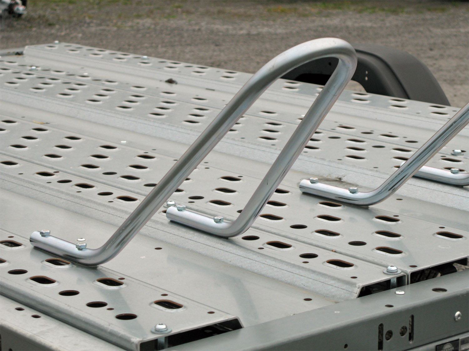 - Stabile Radbügel für sicheren Halt der Motorräder