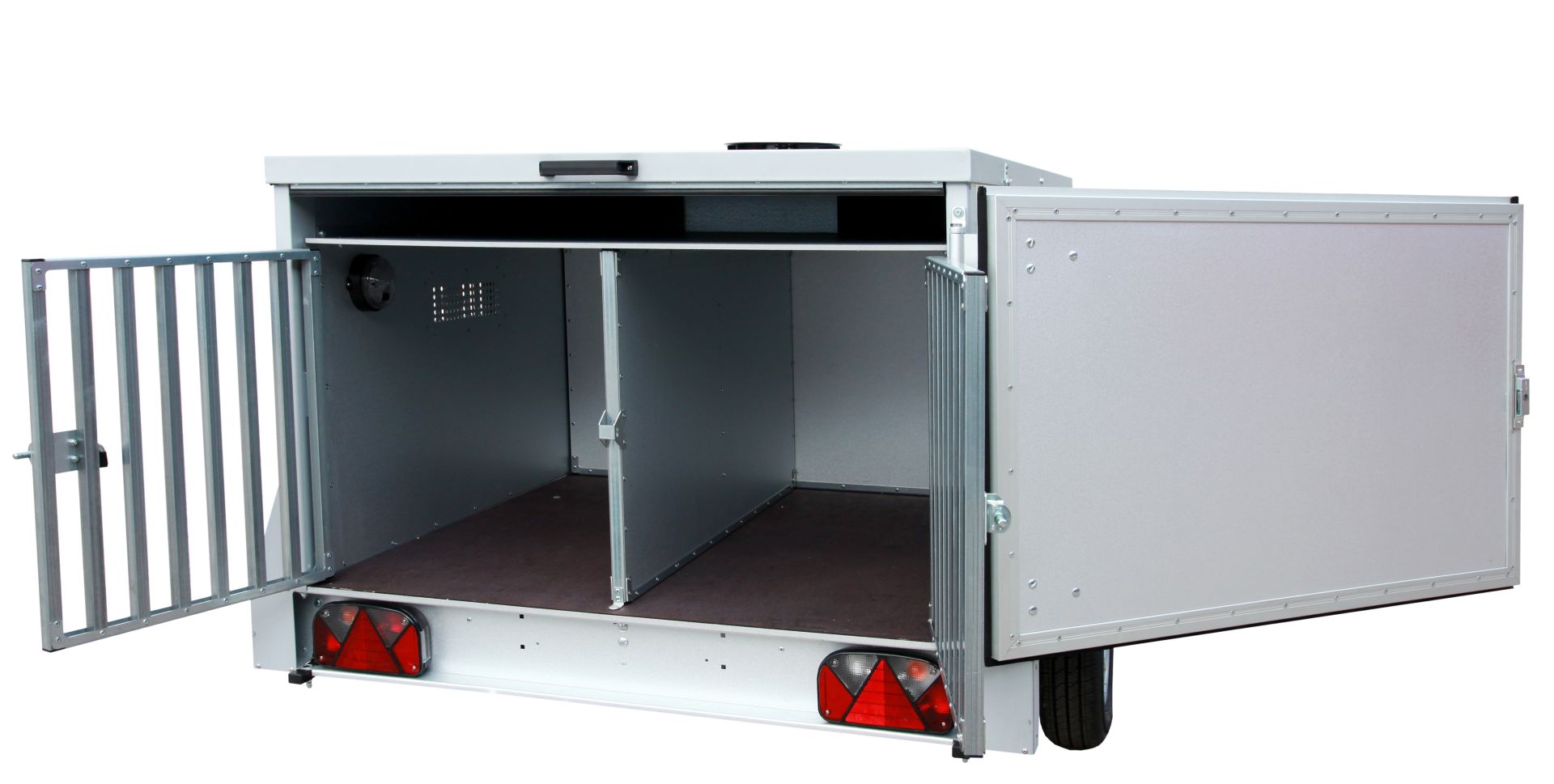 - Ausstattung Hundebox: je 1 Schiebelüfter, je 1 separat nach außen zu öffnende Gittertür