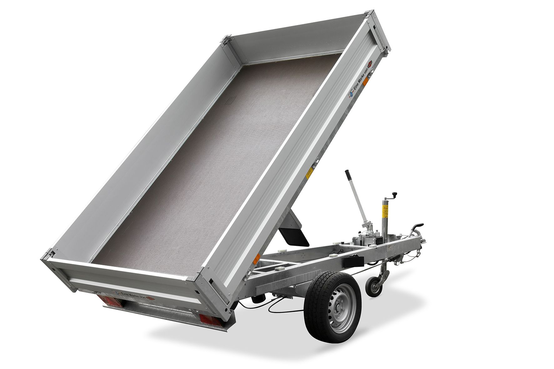Ein geschweißter Rahmen und eine geschweißte Oberbrücke gewährleisten hohe Stabilität, während die 3-seitig abklappbaren Bordwände aus doppelwandigem Aluminium ein bequemes Be- und Entladen ermöglichen. Die vier klapperfreien, versenkten Zurrbügel sorgen für eine sichere Ladungssicherung.