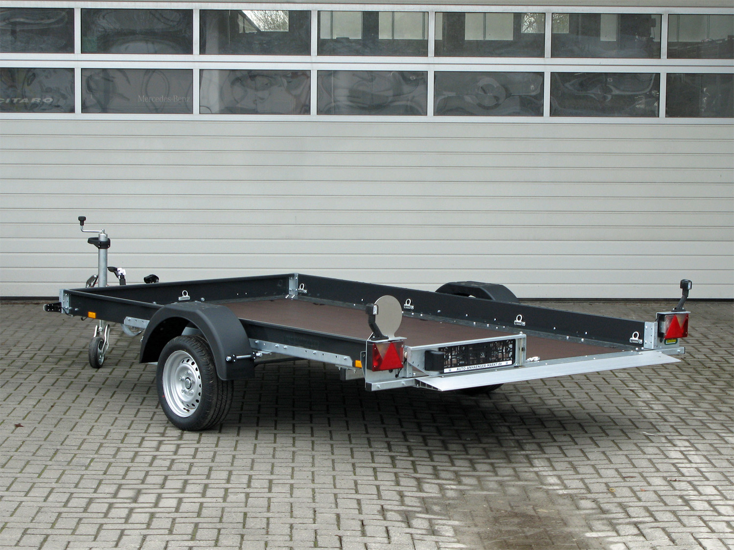 | Aufbau | Durchgehender Auffahrkeil für Auffahren über die gesamte Ladefläche, klappbarer Kennzeichenhalter, stabile Kunststoffkotflügel |
