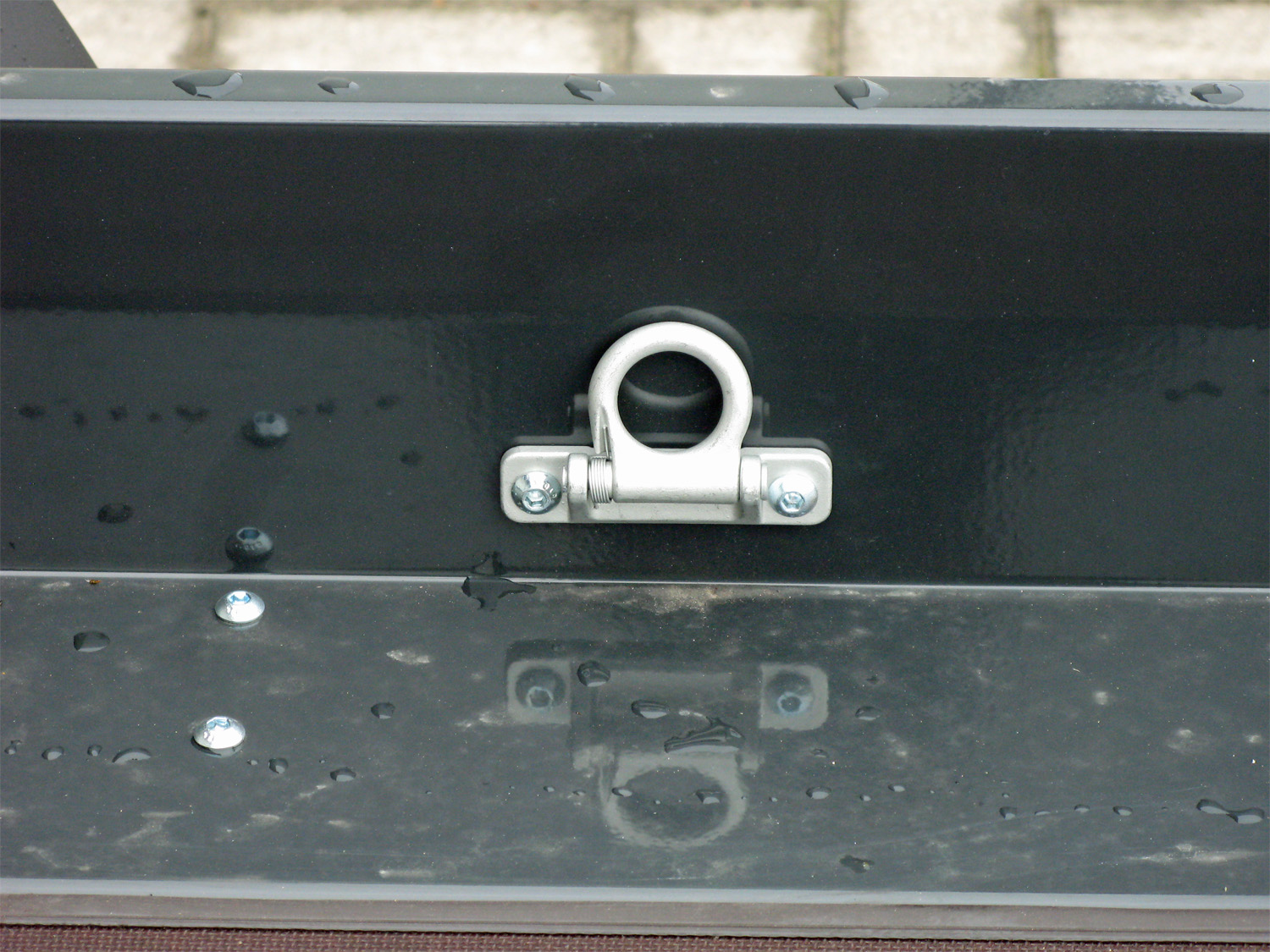 Rahmen 3-seitiger Aufbau aus stabilem Stahlprofil, verzinkt und pulverbeschichtet (RAL 7021)