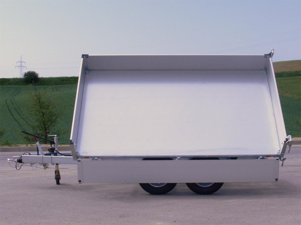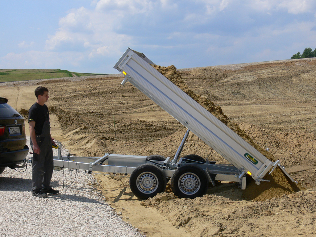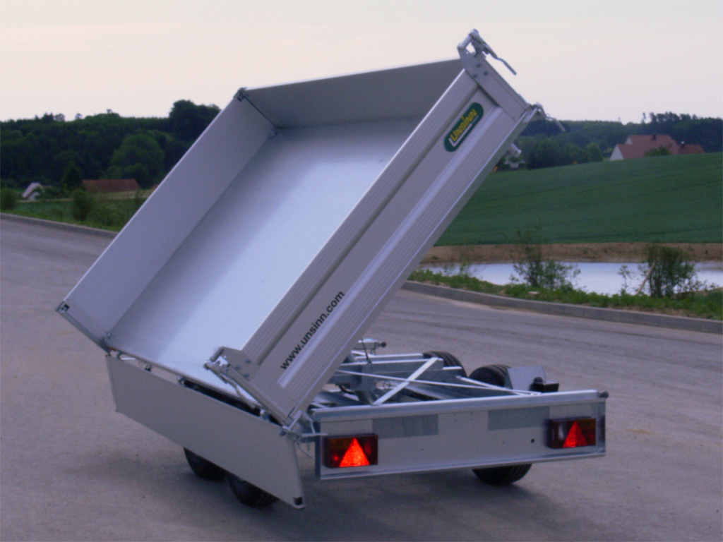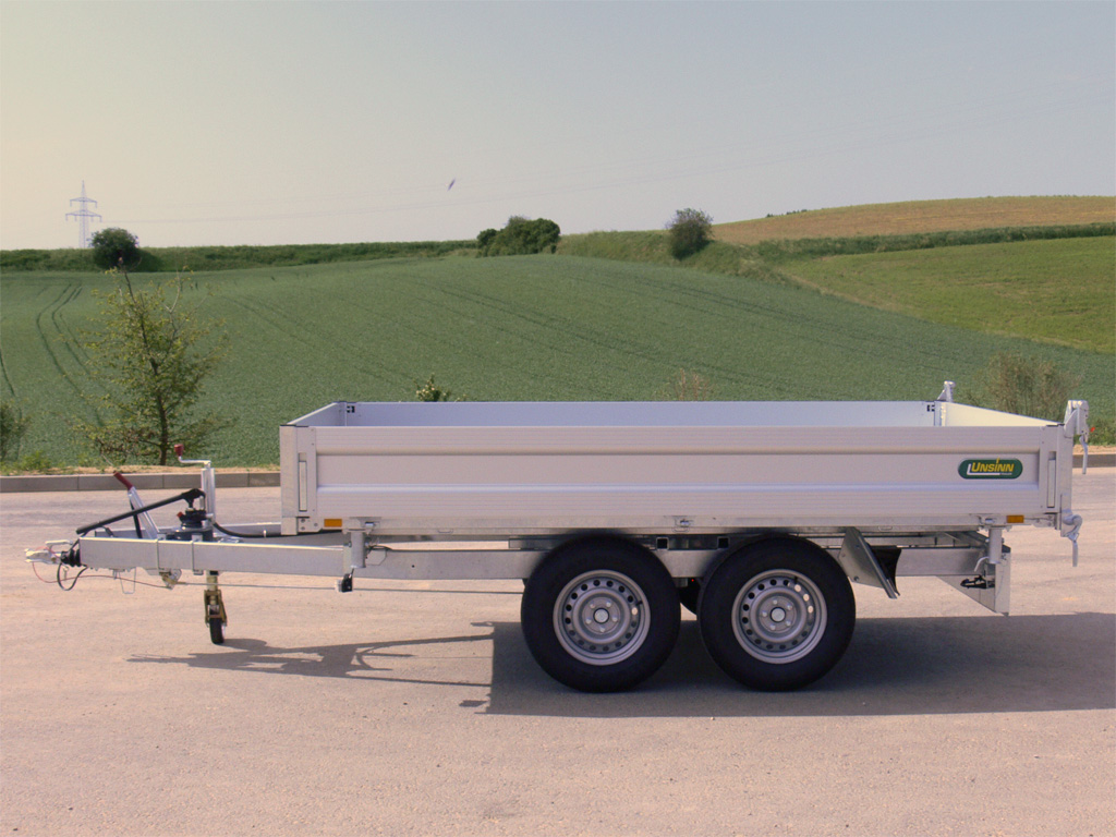 Der Unsinn UDK 3017-26-14 ist ein robuster 3-Seiten-Kipper mit einer hochwertigen Ausstattung für maximale Stabilität und Sicherheit. Die E-Hydraulik wird von einer Batterie gespeist und verfügt über ein Ladegerät sowie eine Notpumpe „Pumpless“ für Akkuschrauber. Ein klappbarer Kennzeichenhalter ermöglicht die praktische Verstauung der Auffahrschienen unter der Ladefläche. Das verwindungssteife Längsträgerfahrgestell mit Hohlprofilkonstruktion ist vollständig verschweißt und im Tauchbad feuerverzinkt. Zudem ist die Halterung für Auffahrschienen bereits vorbereitet. Das verstärkte Automatikstützrad bietet eine Tragkraft von 500 kg, während das Spinlock-Ladungssicherungssystem mit Topfmagnet und 10 versenkten Zurrpins (Zugkraft je 1.500 kg) eine sichere Ladungssicherung gewährleistet. Die Aluminium-Hohlprofil-Bordwände sind eloxiert, vierseitig abklappbar und mit Hakenverschlüssen versehen. Die Heckbordwand ist abklappbar und mit einer Stahlbeplankung ausgestattet. Vier steckbare Stahleckrungen sorgen für zusätzliche Belastbarkeit, und die Ladefläche besteht aus einem 3 mm starken Stahlboden. Zur weiteren Ausstattung gehören eine moderne Beleuchtung mit 13-poligem Stecker und Rückfahrscheinwerfer für optimale Sichtbarkeit.