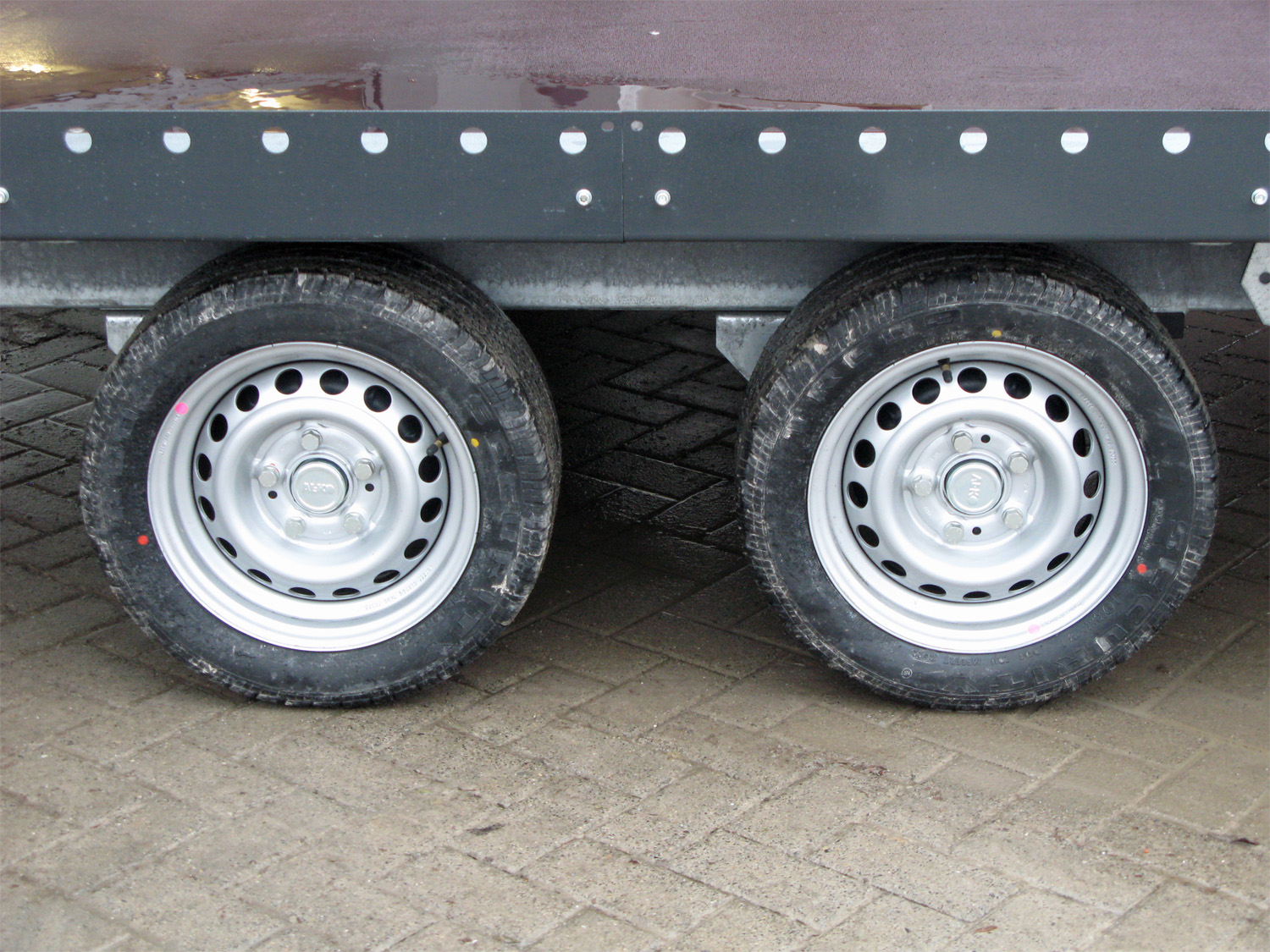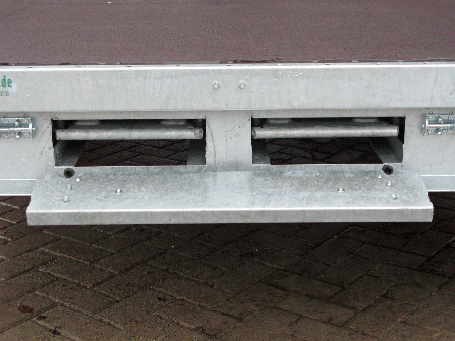 | Seitenschürzen | Verzinkt und pulverbeschichtet (RAL 7021) zur Ladungssicherung |