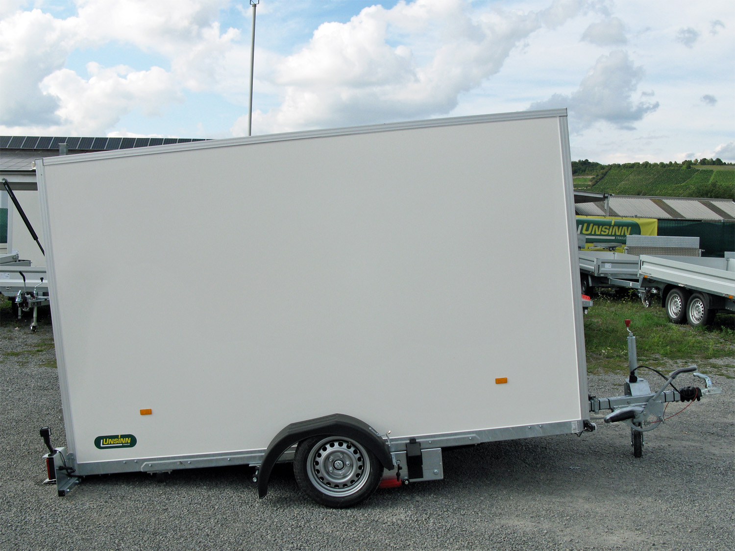 Der hochwertige Absenkkoffer-Anhänger überzeugt mit einem verwindungssteifen Längsträgerfahrgestell, das im Tauchbad feuerverzinkt wurde und ausgezeichnete Fahreigenschaften bietet. Dank der hydraulischen Absenkfunktion entsteht ein Auffahrwinkel von nur ca. 5°, wodurch das Beladen besonders komfortabel ist. Die Wände aus Unique Panels mit einer Kombination aus GFK und Stahl sorgen für Stoßfestigkeit und ermöglichen eine optimale Beschriftung. Der durchgehende Auffahrkeil erlaubt das Auffahren über die gesamte Breite der Ladefläche. Die 100 km/h-Ausführung mit TÜV-Bescheinigung ist serienmäßig enthalten.