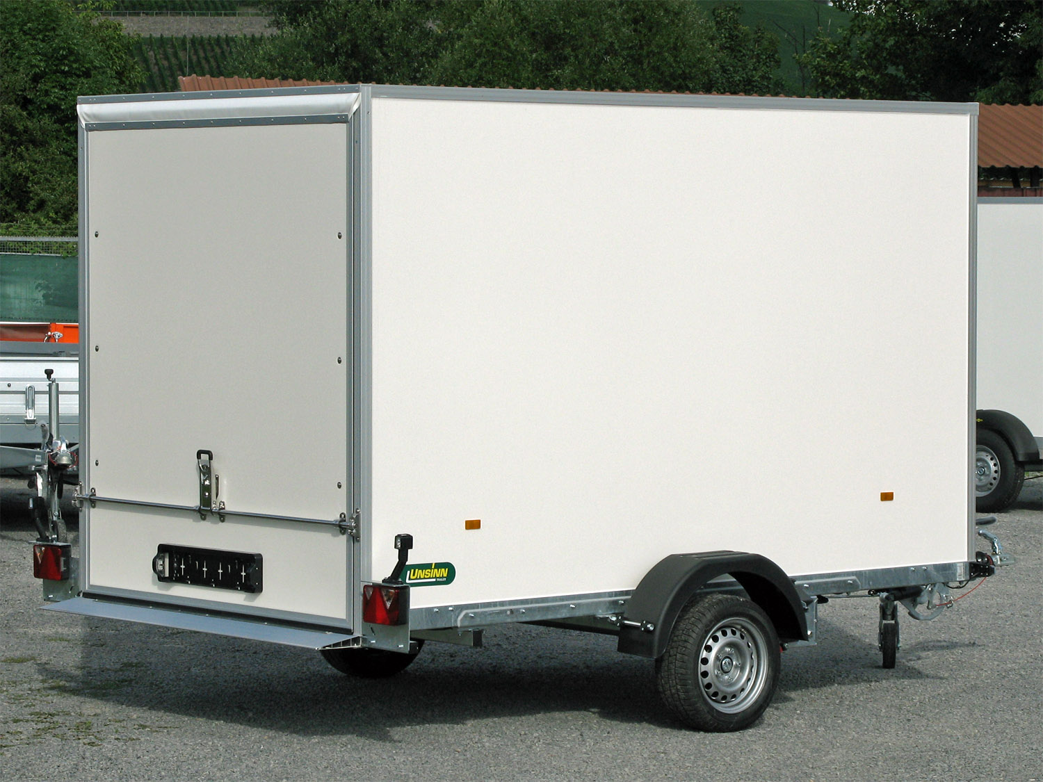 Der hochwertige Absenkkoffer-Anhänger bietet erstklassige Fahreigenschaften dank eines verwindungssteifen Längsträgerfahrgestells, das komplett im Tauchbad feuerverzinkt ist. Die hydraulische Absenkfunktion ermöglicht einen Auffahrwinkel von nur ca. 5°, was das Verladen erheblich erleichtert. Die Wände und das Dach bestehen aus Unique Panels mit einer Kombination aus GFK und Stahl für optimale Stabilität und Beschriftungsmöglichkeiten. Durchgehender Auffahrkeil, robuste Konstruktion und klappbare Zurringe sorgen für höchste Sicherheit beim Transport. TÜV-geprüfte 100 km/h-Ausführung serienmäßig enthalten.