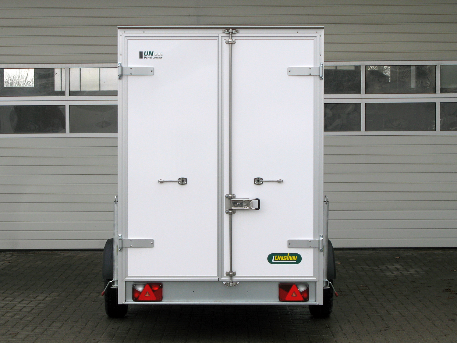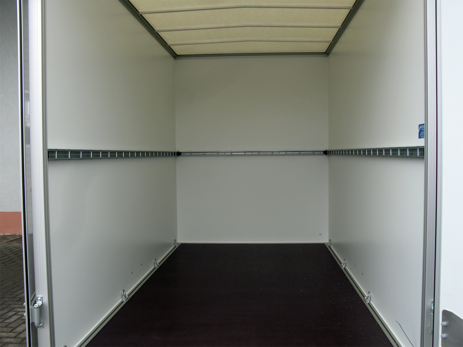 Die Seitenwände bestehen aus GFK-Stahl-Sandwich, und die doppelflüglige Hecktüre mit Verschluss sowie das transparente Lichtdach bieten Komfort beim Beladen. Für eine langlebige Ladefläche sorgt die 18 mm mehrfach verleimte Siebdruckplatte, die rutschhemmend und wasserfest ist.