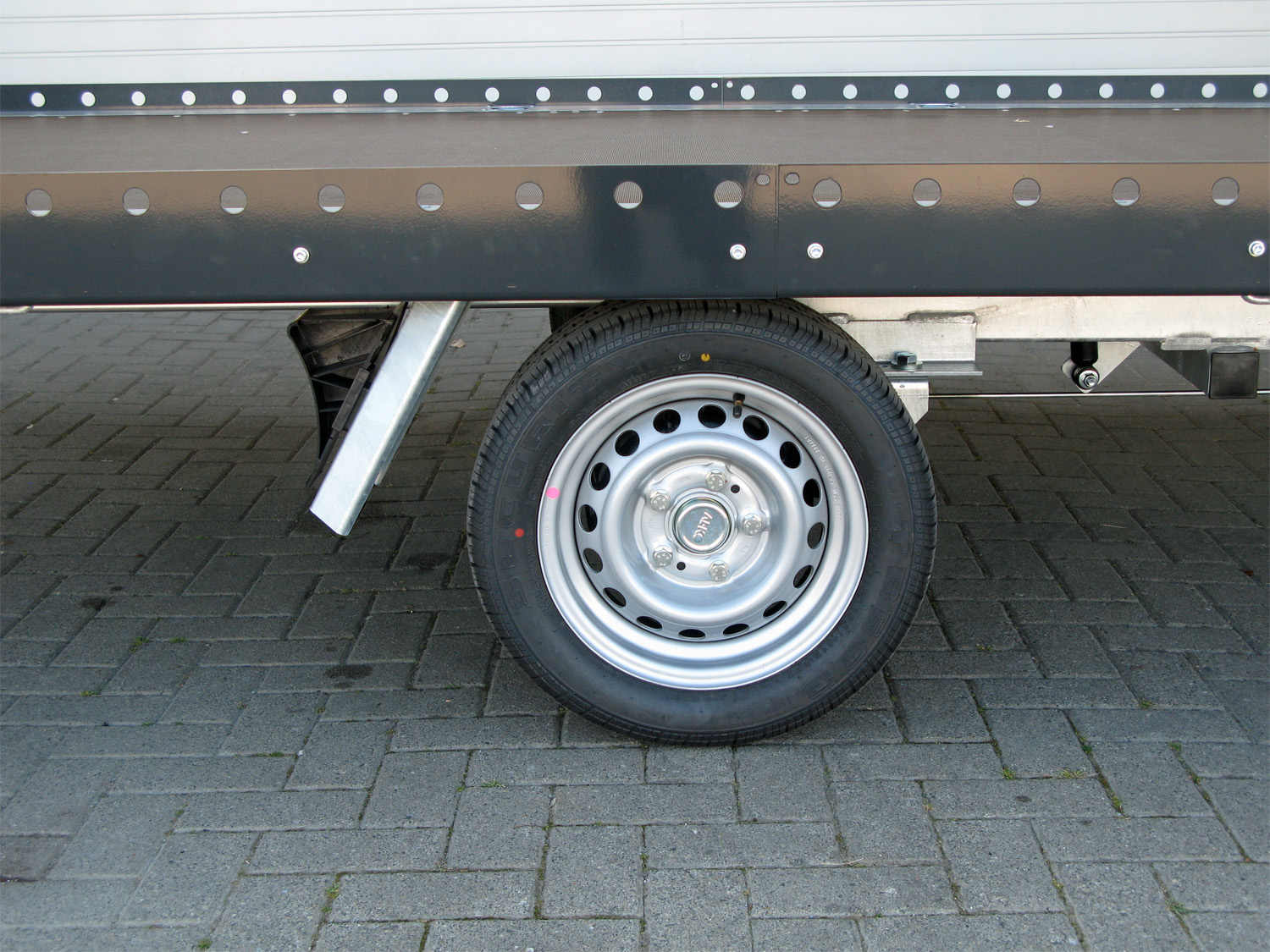 | Ladungssicherung | Seitenschürzen pulverbeschichtet (RAL 7021), Zurrpunkte bis zu 400 daN |