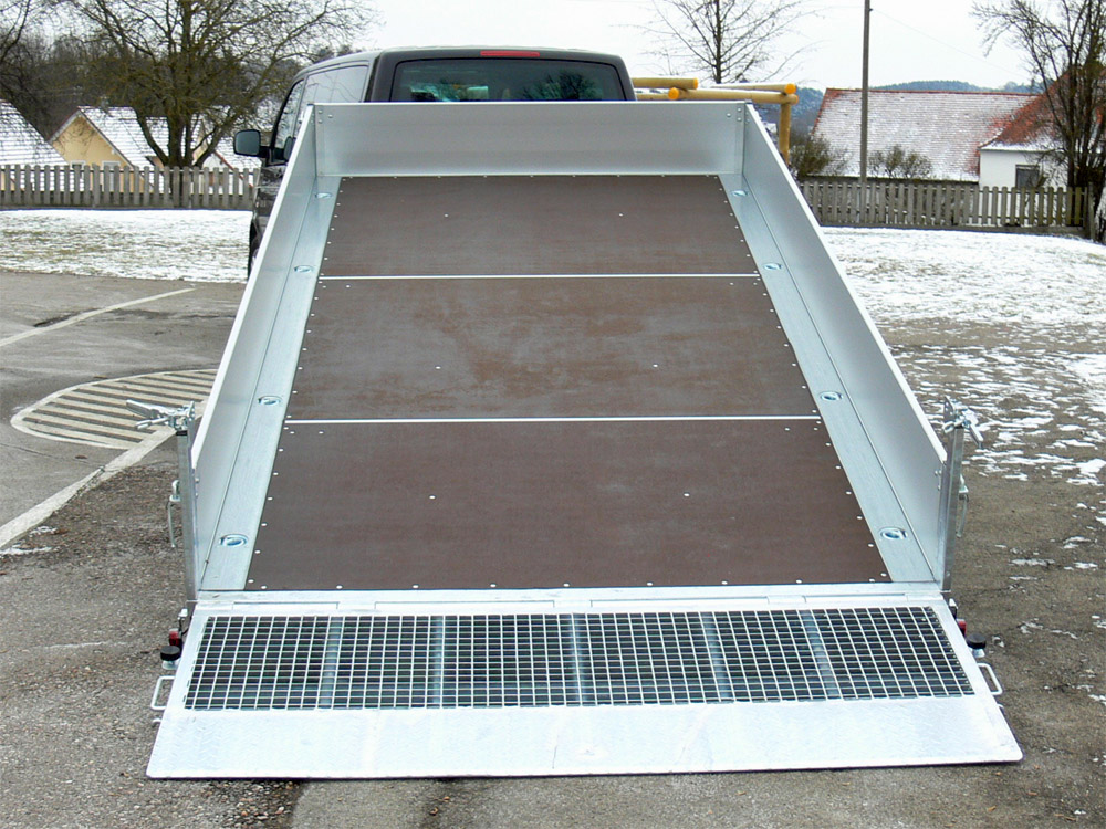 | Ladefläche | Mehrfach verleimte Siebdruckplatte, 18 mm, geteilt mit Stoß, rutschhemmend und wasserfest |