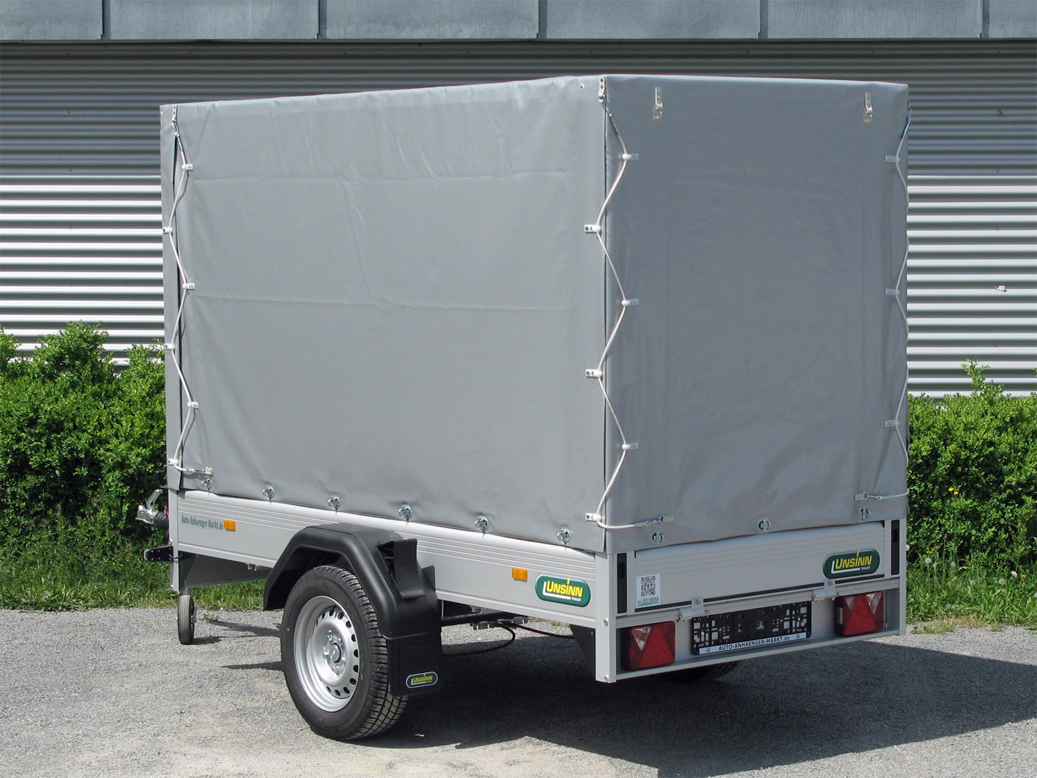 Der Unsinn UT 2512-13-14 ist ein vielseitiger Kastenanhänger, ausgestattet mit einem Planenaufbau mit 1600 mm Innenhöhe. Alle Seiten lassen sich öffnen, und das verzinkte Gestell ist in verschiedenen Farben erhältlich (Hersteller: Planencenter Ulm).