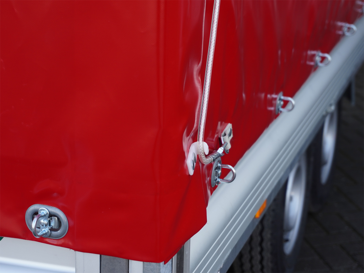 - 8 klappbare Zurrmulden, im Bodenrahmenprofil versenkt montiert