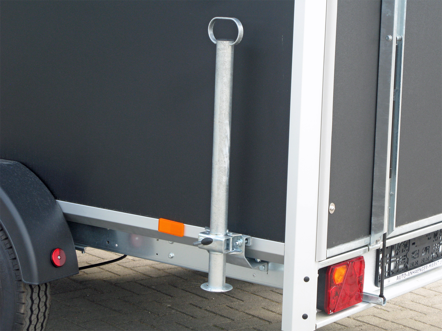 Zur optimalen Sicht und Sicherheit verfügt der Anhänger über eine LED-Innenbeleuchtung, Begrenzungsleuchten und ein Stützrad.